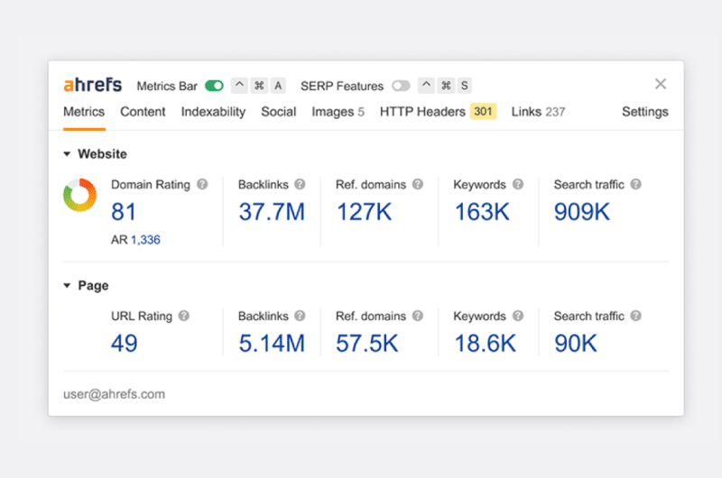 À l’instar de SEMrush, Ahrefs est aussi une suite qui se présente comme un ensemble d’outils SEO tout compris. Elle propose :