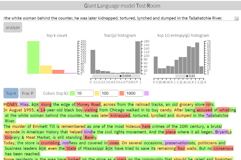 3.2.1. Giant Language model Test Room commonly known as GLTR