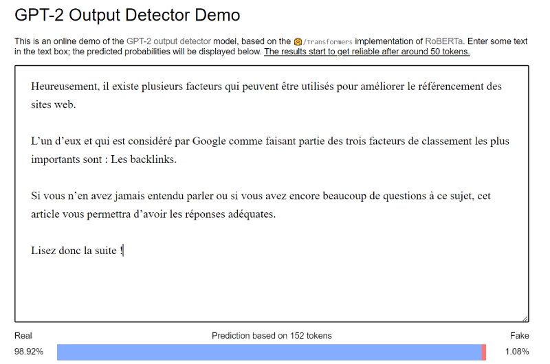 In short, if you use tools like GLTR or Originality to check the quality of your content and they are positive, and the content is creative and unique, it is probably authentic. It’s when content looks suspicious that it’s best to scrutinize it more closely.
